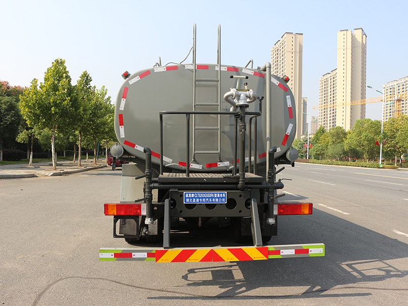 標(biāo)準(zhǔn)配置灑水車主要裝備有:前沖(沖洗公路路面)、后灑(公路路面養(yǎng)護(hù))、側(cè)噴、高位側(cè)花灑(路邊綠化帶優(yōu)化);后工作平臺(tái)高壓水炮,可調(diào)節(jié)成柱狀,射程≥28m;也可調(diào)節(jié)成霧狀,射程≥30米,水泵自吸高度:≤7m,灑水寬度:≥15m。側(cè)防護(hù)網(wǎng),自流閥,消防接頭。灑水車水泵為常壓水泵,功能可以抽水、排水。另外根據(jù)用戶要求,可加消防泵、噴霧機(jī)、農(nóng)藥卷盤、農(nóng)藥柱塞泵。罐內(nèi)可以做防腐防銹、電磁閥氣動(dòng)閥自動(dòng)放水等****,以滿足不同用戶需求。