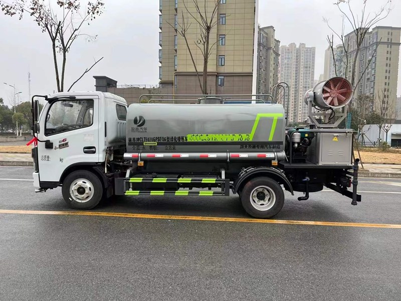 5噸霧炮灑水車專用功能配置:罐體實際容積約為5立方米,采用武鋼優質碳鋼板卷壓成型,自動焊接。配備專用灑水泵,自吸自排,前噴后灑、側噴、后工作平臺及灑水高壓炮。灑水泵自吸高度為6米左右,整車灑水寬度14米左右,后工作平臺高壓水槍上下左右360°旋轉可調成:直沖狀、大雨、中雨、小雨、有效射程≥28米,可整車帶接頭、水位計,自流閥。后工作平臺主管道有一個一寸的澆花接口,附送2根3米水管,1個爬梯,兩側及后保險杠。