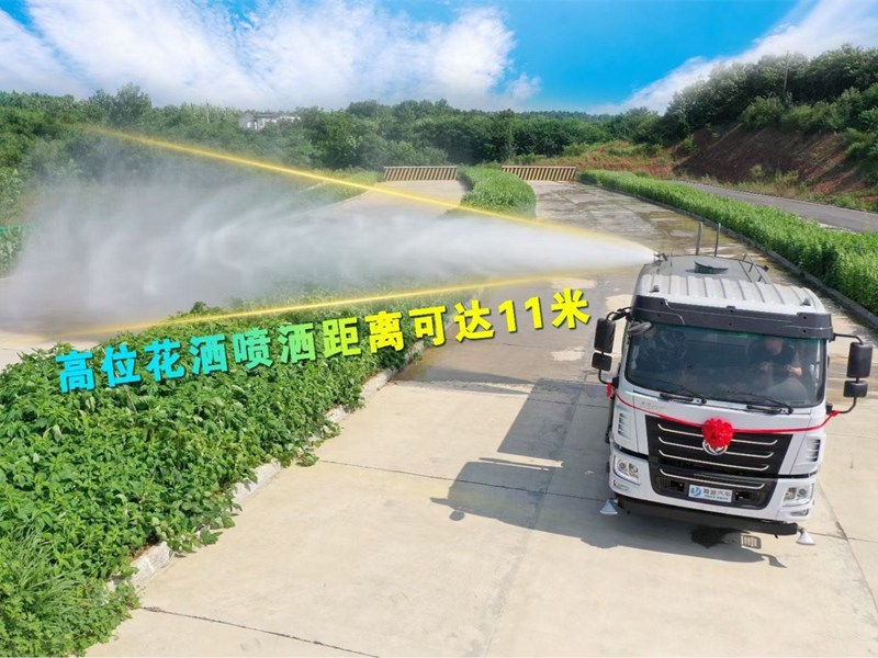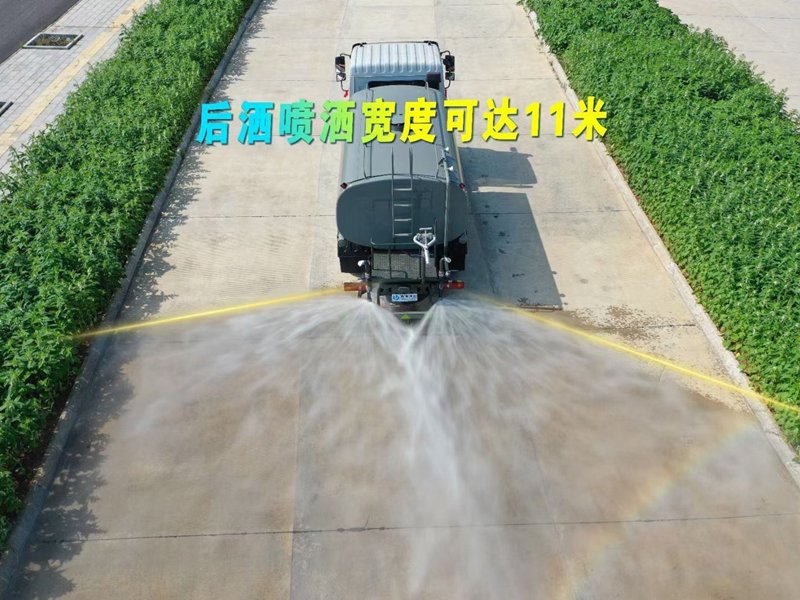 專用功能說明: 用功能配置:罐體實際容積約為14.2立方米,采用武鋼優(yōu)質(zhì)碳鋼板卷壓成型。配備專用灑水泵,自吸自排,前噴后灑、側(cè)噴、后工作平臺及灑水高壓炮。灑水泵自吸高度為6米左右,整車灑水寬度14米左右,后工作平臺水炮可調(diào)成:直沖狀、大雨、中雨、小雨、毛毛雨,有效射程≥28米,整車帶接頭、水位計,自流閥。后工作平臺主管路帶1寸澆花接口,附送2根3米水管,1個爬梯,兩側(cè)及后保險杠。