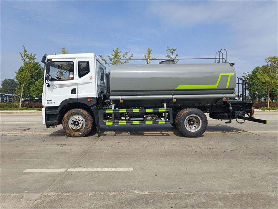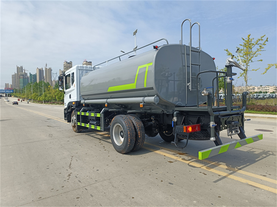 15方灑水車(chē)運(yùn)輸介質(zhì):丙酮水溶液,密度:800千克/立方米,罐體有效容積:14.7立方米,整車(chē)長(zhǎng)度,罐體外形尺寸(長(zhǎng)×長(zhǎng)軸×短軸),軸距,前懸與后懸的對(duì)應(yīng)關(guān)系為吸程≧7米,灑水寬度≧14-16米,射程≧25-30米,引水時(shí)間<5min,流量60m3/h。前沖(噴)、后灑、帶側(cè)噴(花灑)、帶后工作平臺(tái)、平臺(tái)上安裝綠化灑水高炮(炮噴射形狀可調(diào)節(jié):直沖、大雨、中雨、毛毛雨、霧狀、可連續(xù)調(diào)節(jié),360°旋轉(zhuǎn)),配消防接口,自流閥,濾網(wǎng),帶自吸自排功能。配備大功率專(zhuān)用灑水泵,泵可自吸自排,安裝過(guò)濾網(wǎng),帶消防接口,可通過(guò)消防栓進(jìn)水,帶自流閥,隨車(chē)選裝20米綠化卷盤(pán),可噴灑農(nóng)藥,罐體金屬漆。罐體有橢圓和方圓罐兩種,可根據(jù)用戶的要求定做