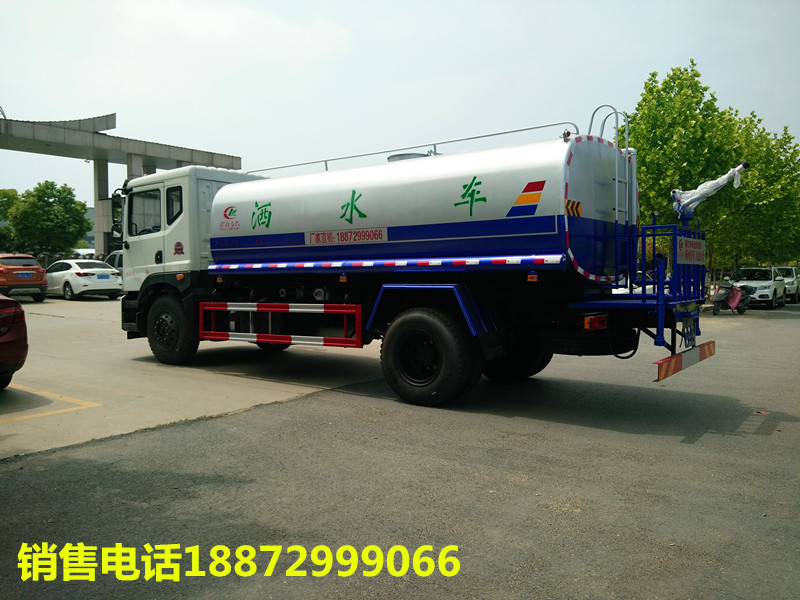 東風(fēng)15噸灑水車隨底盤選裝駕駛室;品名:水;密度:1000千克/立方米;有效容積:11.45立方米;外形尺寸長(zhǎng)(mm)/軸距(mm)/后懸(mm)/罐體尺寸(長(zhǎng)×長(zhǎng)軸×短軸)(mm)對(duì)應(yīng)關(guān)系灑水車吸程≧7米,灑水寬度≧14-16米,射程≧25-30米,引水時(shí)間<5min,流量60m3/h。前沖(噴)、后灑、帶側(cè)噴(花灑)、帶后工作平臺(tái)、平臺(tái)上安裝綠化灑水高炮(炮噴射形狀可調(diào)節(jié):直沖、大雨、中雨、毛毛雨、霧狀、可連續(xù)調(diào)節(jié),360°旋轉(zhuǎn)),配消防接口,自流閥,濾網(wǎng),帶自吸自排功能。配備大功率專用灑水泵,泵可自吸自排,安裝過濾網(wǎng),帶消防接口,可通過消防栓進(jìn)水,帶自流閥,隨車選裝20米綠化卷盤,可噴灑農(nóng)藥,罐體金屬漆。罐體有橢圓和方圓罐兩種,可根據(jù)用戶的要求定做。 裝置等部件組成。水泵、取力器、球閥、濾網(wǎng)均為國家標(biāo)準(zhǔn)產(chǎn)品,具有性能優(yōu)良, ★ 罐體為橢圓形或方形,采用武鋼優(yōu)質(zhì)碳鋼板制成,罐體倉內(nèi)1.5米一道隔板,具有防波防蕩作用, |