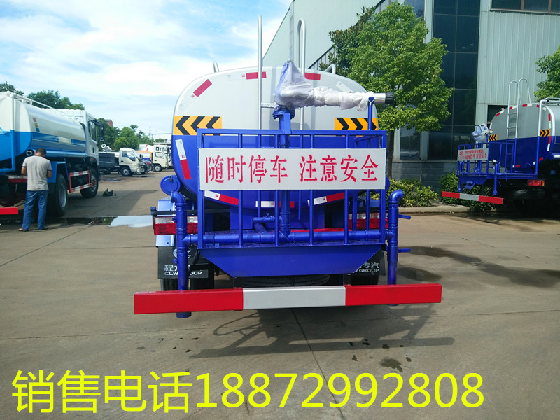 5噸灑水車(chē),隨底盤(pán)選裝駕駛室前面罩以及前霧燈。2、灑水車(chē)罐體有效容積:4.06立方米,罐體外形尺寸(長(zhǎng)×長(zhǎng)軸×短軸關(guān)系為(mm): 3400×1600×1100, 吸程≧7米,灑水寬度≧14-16米,射程≧25-30米,引水時(shí)間<5min,流量60m3/h。前沖(噴)、后灑、帶側(cè)噴(花灑)、帶后工作平臺(tái)、平臺(tái)上安裝綠化灑水高炮(炮噴射形狀可調(diào)節(jié):直沖、大雨、中雨、毛毛雨、霧狀、可連續(xù)調(diào)節(jié),360°旋轉(zhuǎn)),配消防接口,自流閥,濾網(wǎng),帶自吸自排功能。配備大功率專(zhuān)用灑水泵,泵可自吸自排,安裝過(guò)濾網(wǎng),帶消防接口,可通過(guò)消防栓進(jìn)水,帶自流閥,隨車(chē)選裝20米綠化卷盤(pán),可噴灑農(nóng)藥,罐體金屬漆。罐體有橢圓和方圓罐兩種,可根據(jù)用戶(hù)的要求定做 發(fā)動(dòng)機(jī)可選,云內(nèi),朝柴 ,錫柴,全柴