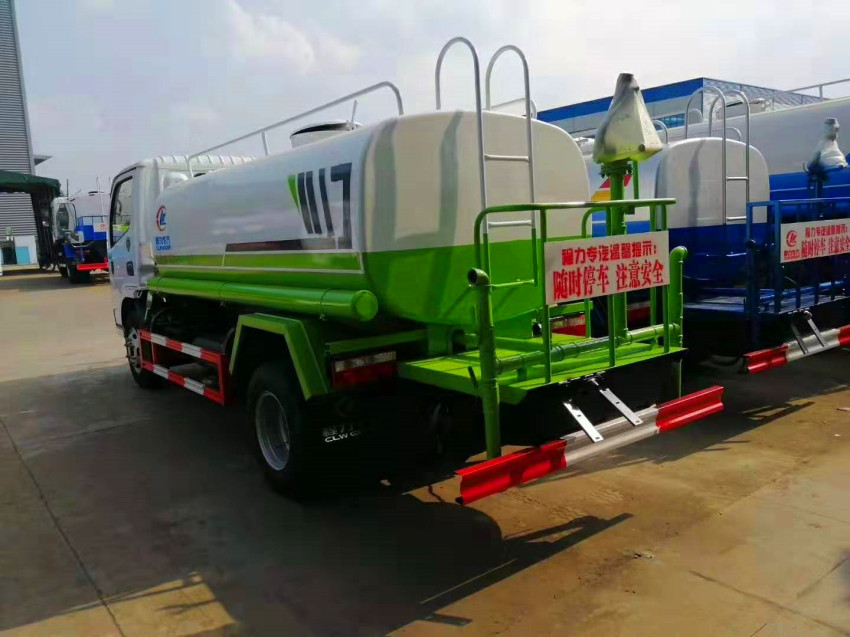 國六5噸灑水車吸程≧7米,灑水寬度≧14-16米,射程≧25-30米,引水時間<5min,流量60m3/h。前沖(噴)、后灑、帶側噴(花灑)、帶后工作平臺、平臺上安裝綠化灑水車高炮(炮噴射形狀可調節:直沖、大雨、中雨、毛毛雨、霧狀、可連續調節,360°旋轉),配消防接口,自流閥,濾網,帶自吸自排功能。配備大功率專用灑水泵,泵可自吸自排,安裝過濾網,帶消防接口,可通過消防栓進水,帶自流閥,隨車選裝20米綠化卷盤,可噴灑農藥,罐體金屬漆。罐體有橢圓和方圓罐兩種,可根據用戶的要求定做 發動機可選,云內,朝柴 ,錫柴,全柴