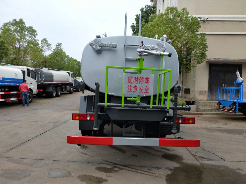 上裝配置:罐體采用4mmq235優質碳鋼板制作,容積10-15立方,前沖(噴)后灑,帶側噴,罐體后帶工作平臺,平臺上安裝綠化灑水炮,灑水炮可全方位旋轉,可連續調成直沖狀、大雨、小雨、毛毛雨,帶安全護欄,配備全國質量評比第一名的億豐大功率專用灑水泵,泵可自吸自排,安裝過濾網,帶消防接口,可通過消防栓進水,帶自流閥,罐體金屬漆。