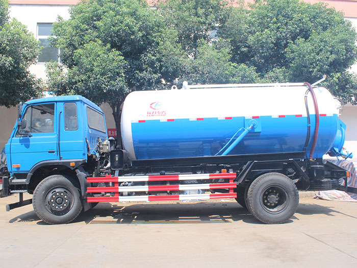 罐體采用6mm鋼板定做,容積10.6立方,配置SK12水循環真空泵或者隨州10噸真空泵,罐體液壓舉升,帶600的液壓快開。145東風10噸吸污車底盤配置:底盤配置:出玉柴160馬力發動機,東風145駕駛室,3950軸距,前橋2.8噸后橋7.65噸,5檔帶副變速,9.00輪胎, ABS,