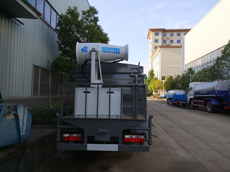 霧炮參數:霧炮射程從30米、40米,可隨意選擇,射程不同,價格也不同。霧炮自帶柴油發電機組,標配100米以內搖控裝置,可360度搖控旋轉,達到全方位大面積精準噴霧,經環保部門測試,霧炮車可以將空氣中的PM10濃度降低20%左右。該車負載的大型霧炮噴霧流量平均每分鐘20-150升水,同樣10噸水,該款新型霧炮車的灑水時間是普通灑水車的10-15倍,在霧霾天氣可以進行液霧降塵、將漂浮在空氣中污染顆粒物迅速逼降地面,達到凈化空氣的效果。