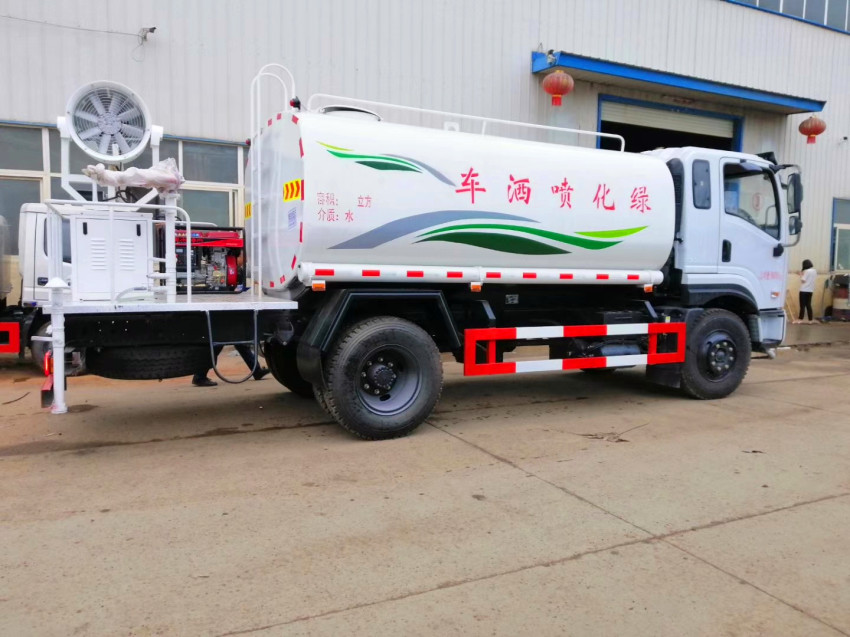 灑水車,又稱綠化噴灑車。城市環衛主力車型大致有10噸灑水車,15噸灑水車,也可以加裝霧炮,成為專用霧炮車。主要用于道路清掃,園林綠化,森林滅火,工業除塵,消防急救等。具有自吸自排功能,垂直吸≥6米,前沖后灑,側噴,灑水寬度≥14米,后置工作臺,帶綠化灑水高炮,射程≥28米,高壓炮噴水可調節成柱狀和霧狀,配備大功率專用灑水泵,帶消防接頭,自流閥,帶自吸功能。如果有消防選裝消防泵,射程可達50-60米