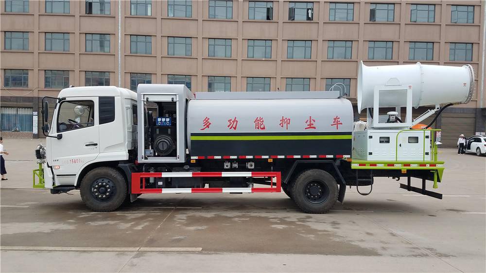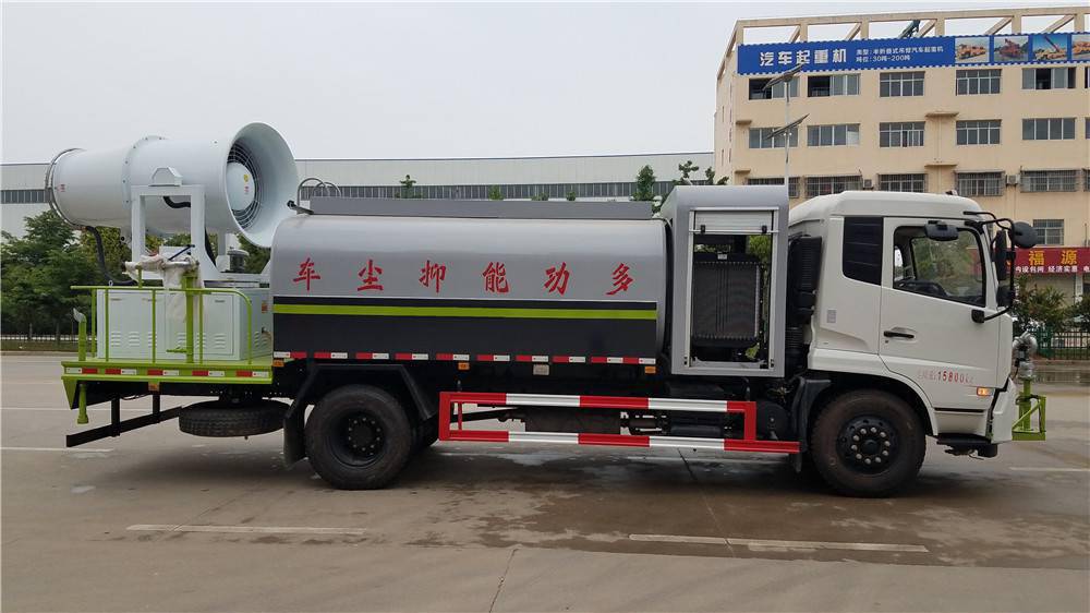 噴霧降塵車 : 主要是在工地在拆遷時(shí)需要邊噴水邊作業(yè),在清運(yùn)建筑垃圾時(shí),也需要先將垃圾澆濕,再裝上渣土車,以免灰塵四起。為了減少拆遷工地?fù)P塵污染,將購(gòu)置10臺(tái)專業(yè)噴霧防塵車,專門用于拆遷工地?fù)P塵控制,每輛噴霧降塵車噴霧作業(yè),遠(yuǎn)噴水距離為60到100余米,蓄水量近10噸,主要作用是噴霧抑塵,同時(shí)具備灑水和道路沖洗功能,可以有效抑制揚(yáng)塵的產(chǎn)生。