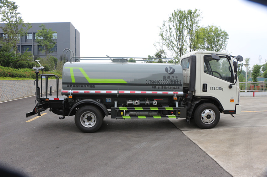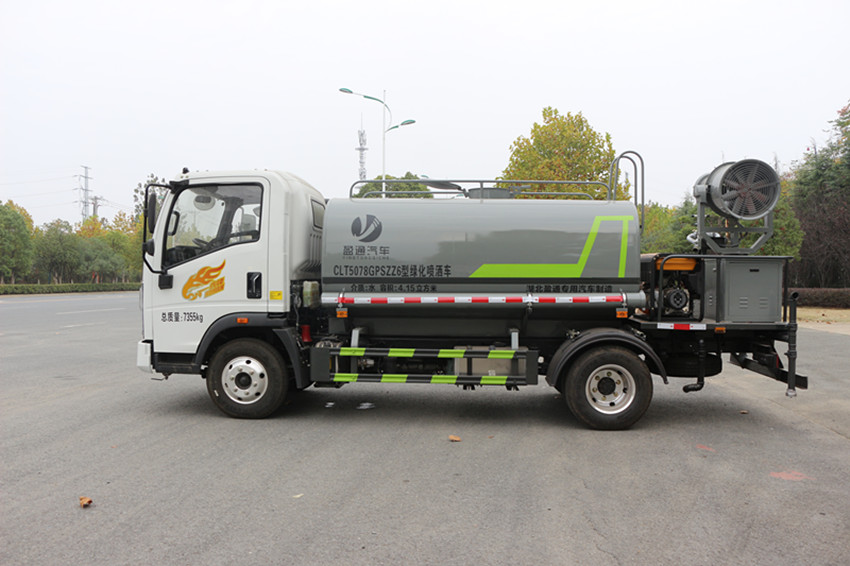 5立方灑水車專用配置:罐體標(biāo)準(zhǔn)容積5.0立方,采用4mm**碳鋼板,罐內(nèi)制作減震波浪隔板,以減輕汽車行駛時罐體液體沖擊,配置灑水車水泵,可泵進(jìn)泵出,安裝前沖、后灑、側(cè)噴、灑水平臺、灑水高炮(可360度旋轉(zhuǎn),可調(diào)節(jié)直流、大雨、小雨、毛毛雨、霧狀),前封頭帶水位計,后平臺主管路帶1寸澆花接口,后爬梯,平臺后部帶小安全告知牌:“隨時停車,注意安全”,配置兩根三米的吸水管,電子音樂喇叭,及消防接口。罐體顏色:銀灰/銀藍(lán),或上白/下藍(lán),罐體兩側(cè)噴“灑水車、綠化灑水車”字樣,貼反光標(biāo)示。灑水寬度≥12米,高炮射程≥25米,垂直吸程≥6米。
