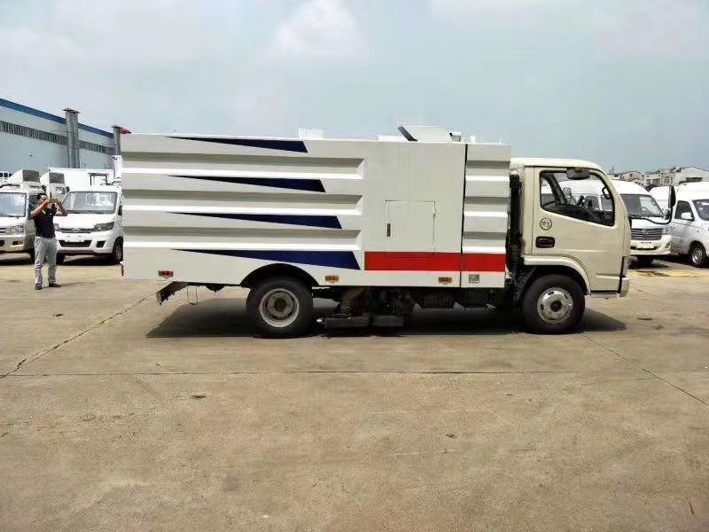 操縱箱在駕駛室,各系統(tǒng)電氣集中控制,操作方便。外觀造型電腦設(shè)計,高位側(cè)裙,曲面過渡,整體協(xié)調(diào)勻稱;本車由底盤,副發(fā)動機,風機,電磁控制閥,垃圾箱,水箱,吸盤,掃把,噴水系統(tǒng),液壓系統(tǒng),電控系統(tǒng)等組成。