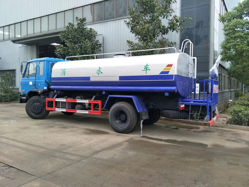 灑水車介紹及性能特點:1.功能介紹:前沖(噴)后灑、帶側噴、后置工作平臺、平臺上安裝綠化灑水高壓炮(炮形狀可調:直沖狀、大雨、中雨、毛毛雨,可連續(xù)調節(jié),理射程可達28米) ,配備的“程力威”牌大功率灑水泵,帶消防接頭,帶自流閥,帶自能,帶濾網(wǎng)。2.產(chǎn)品概述:該車型為東風公國五 排放。灑水車部分由罐體、水泵、取力器、傳動軸、球閥、噴灑裝置等部件組成。采用定型產(chǎn)品,具有性能、工作可靠、通用適配等特點。灑水車罐體結構為橢圓形或方圓形,采用武鋼優(yōu)質碳鋼制作,的對焊接工藝,罐設防蕩防波隔板,下端有通孔,罐體成型后高壓氣體試漏檢測,使罐體具有強度高、重心穩(wěn)、車輛運載平穩(wěn)等特點。