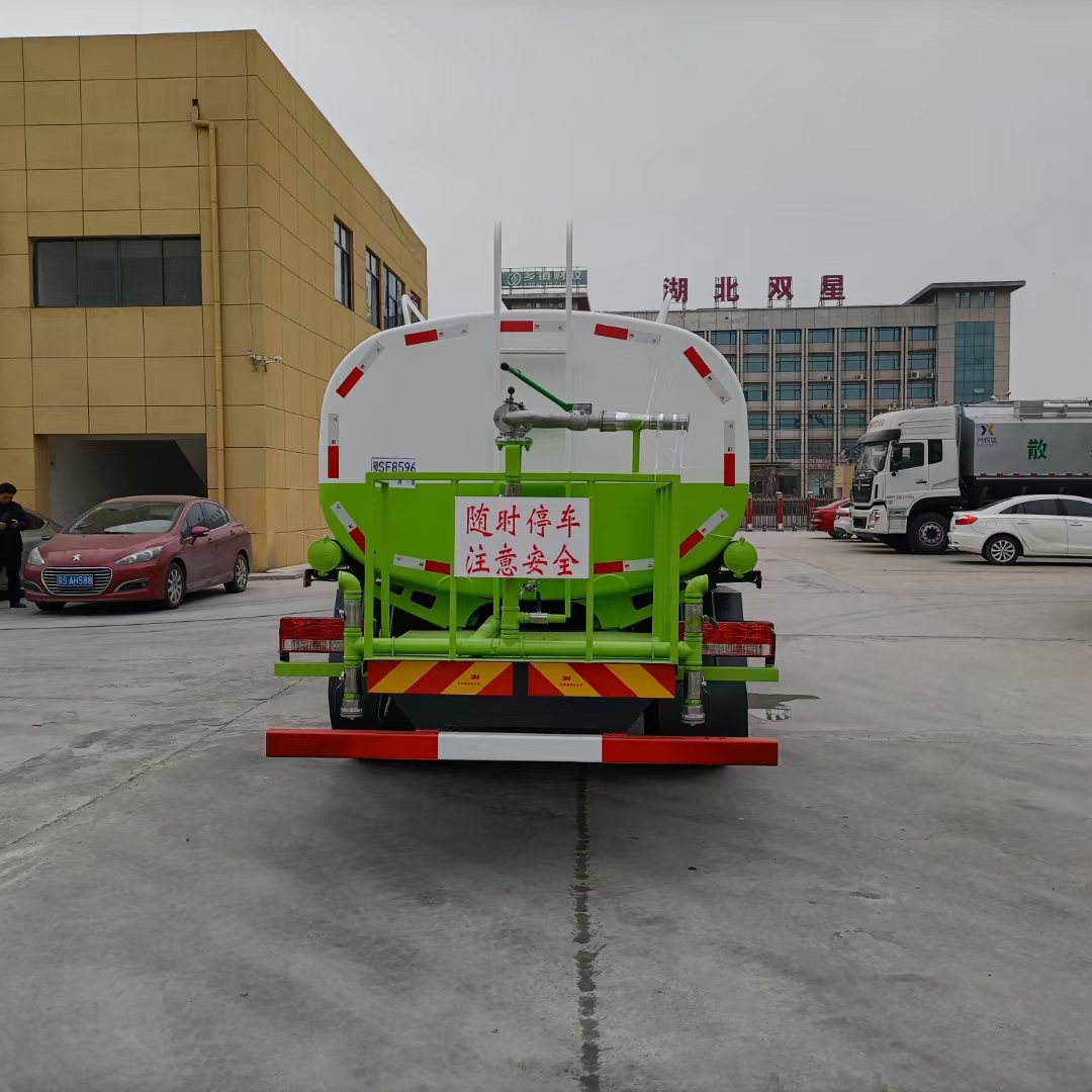 4.灑水車前噴頭位置較低,靠近地面,噴灑壓力較大,可用于沖洗路面;后噴頭位置較高(灑水車后噴頭一般左右各安裝一個(gè)),灑水面較寬,可用于公路施工灑水,使用后噴頭時(shí),應(yīng)將前噴管關(guān)閉;使用可調(diào)噴頭灑水時(shí),灑水寬度可根據(jù)需要調(diào)整。灑水寬度越寬,中間重疊量越少,灑水密度越均勻。