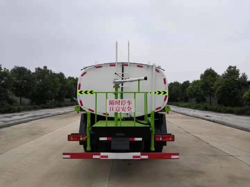 風專底D1國六12方灑水車國六12噸 罐體容積為12立方多功能灑水車,罐體鋼板為4mm碳鋼Q235材質,罐內隔板具有防波作用,以減輕汽車行駛時罐體液體沖擊,罐體及整車外形尺寸按照公告。帶大功率專用灑水泵,泵可自吸自排,整車前沖、后灑、側噴、帶65消防接口,后平臺配TDM-50、TDM-60、TDM80型風送式霧炮機組;罐體前封頭配大功率柴油發電機組;遠程遙控系統控制;霧炮機自動旋轉角度0-360°。后平臺帶綠化灑水炮,灑水炮可全方位旋轉,可連續調成直沖狀、大雨、小雨、毛毛雨;前封頭帶水位計,后平臺主管路帶1寸澆花接口,后爬梯。帶兩根輸水管及陰陽端。