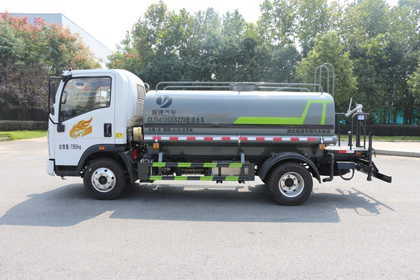 罐體材質采用武鋼產4mm優質碳鋼板材制作,裝配中沖,后灑,側噴,工作平臺及綠化炮(可選擇駕駛室氣控操作系統),配葉輪專用水泵,具有自吸自排功能,后工作平臺可選裝30米全自動柴油機霧炮,駕駛室前部可選裝全自動電動水炮