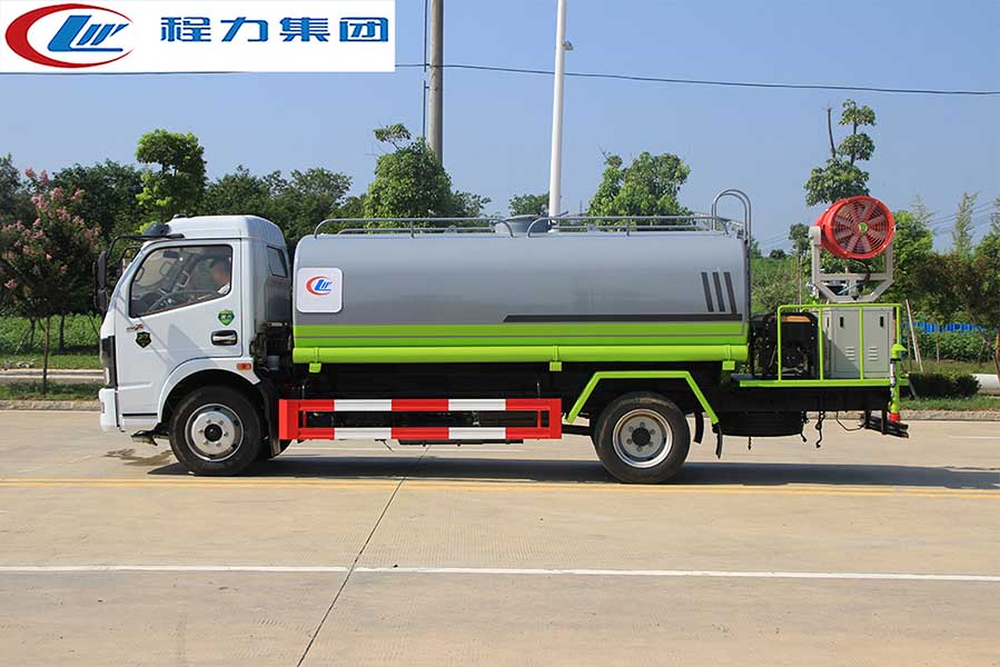 9方東風多功能抑塵車配置價格30米霧炮車圓罐灑水車廠家圖片,采用東風福瑞卡底盤,3800mm軸距,國六新款駕駛室,云內(nèi)國六150馬力,萬里揚6檔變速箱,2.2T前橋,4.5T后橋,7.50R16的鋼絲胎,帶原廠空調(diào)、電動窗、中控鎖、ABS,24V雙電瓶,新法規(guī)底盤。圓罐容積可做到9方多,罐體采用優(yōu)質(zhì)碳鋼制作。前沖,后灑,側(cè)噴,右側(cè)花灑,罐體后帶工作平臺,平臺上安裝綠化灑水炮,灑水炮可全方位旋轉(zhuǎn),可連續(xù)調(diào)成直沖狀、大雨、小雨、毛毛雨,帶安全護欄,配備大功率專用灑水泵,泵可自吸自排,安裝過濾網(wǎng),帶消防栓接口,可通過消防栓進水,帶自流口。