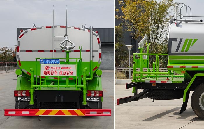 配備大功率專用灑水泵,泵可自吸自排,安裝過濾網,帶消防接口,可通過消防栓進水,帶自流閥,隨車選裝20米綠化卷盤,可噴灑農藥,罐體金屬漆。罐體有橢圓和方圓罐兩種,可根據用戶的要求定做