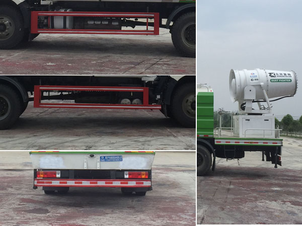 解放霧炮車裝置為抑塵霧炮,用于城市抑塵.整車長/軸距/后伸對應關系為(mm):11020/4300. 防護材料:Q235A碳鋼,連接方式:左右側面及后部防護均采用焊接連接,后部防護斷面尺寸(mm): 120×50,后部防護離地高度(mm):500.ABS系統控制器生產企業/型號為威伯科(上海)管理有限公司 /4460046300.當裝配抑塵距離為60米及80米抑塵霧炮時,后伸為720mm,當裝配抑塵距離為80米和 100米抑塵霧炮時,后伸為920mm,當裝配抑塵距離為120米抑塵霧炮時,后伸為1300mm. 該車罐體長×寬×高為,有效容積:11.46立方米. |