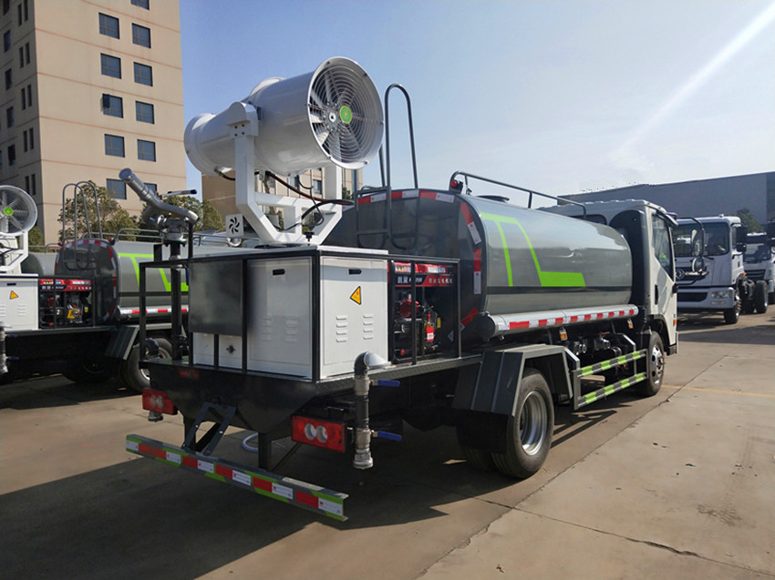 性能簡介:吸程≧7米,灑水寬度≧14-16米,射程≧25-40米,引水時間<5min,流量60m3/h。前沖(噴)、后灑、帶側噴(花灑)、帶后工作平臺、平臺上安裝綠化灑水高炮(炮噴射形狀可調節:直沖、大雨、中雨、毛毛雨、霧狀、可連續調節,360°旋轉),配消防接口,自流閥,濾網,帶自吸自排功能。安裝30-80米霧炮,霧炮可以遙控操作,可以手動操作,按霧炮大小配多大功率發電機