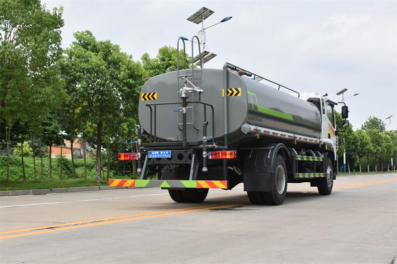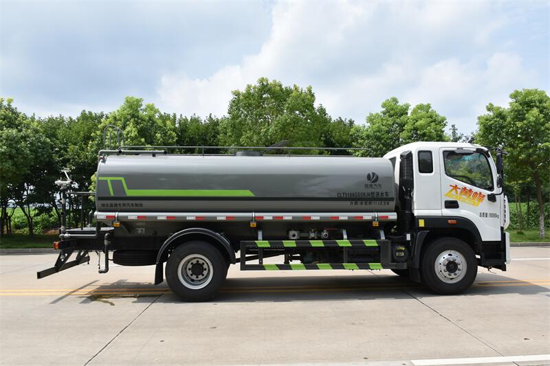 福田15噸灑水車標(biāo)配前噴(鴨嘴)、后沖、后灑、側(cè)噴、后置式工作 平臺(tái),平臺(tái)上配置綠化水炮(可 360°旋轉(zhuǎn),既可以調(diào)成柱狀,也可 以調(diào)成霧狀,更可以調(diào)成直沖狀、大雨、中雨、小雨、毛毛雨),配 備優(yōu)質(zhì)大功率專用灑水泵(可自吸自排,可從河里或池塘抽水到罐體), 取力器,雜物過濾網(wǎng),消防接口,自流球閥系統(tǒng)、取力器、球閥、濾網(wǎng) 均為國家標(biāo)準(zhǔn)產(chǎn)品,主管道加粗,法蘭墊、法蘭盤加厚,大通徑球閥。 整體具備性能優(yōu)良安全可靠、效率高、流量大、維修方便等特點(diǎn)。 二.產(chǎn)品配置 1.底盤配置: 發(fā)動(dòng)機(jī)玉柴 200 馬力(四缸),法士特 8 檔變速箱,軸距 4500,前 橋 4.5T,后橋 10T,10.00 鋼絲胎,斷氣剎,空調(diào),電動(dòng)玻璃,ABS。