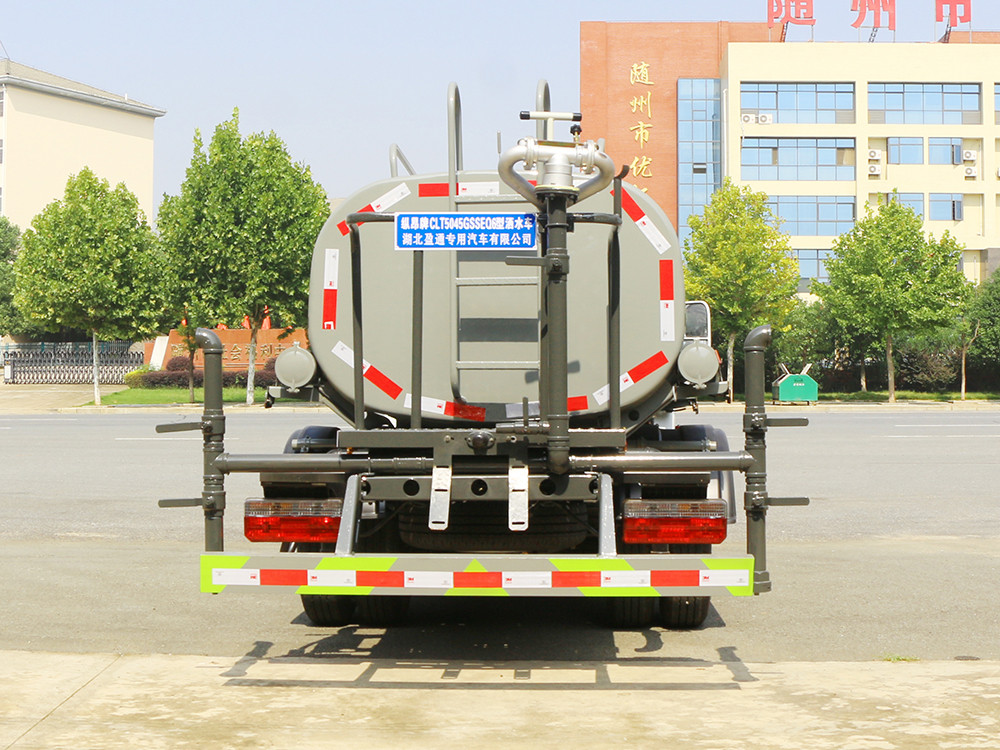 東風途逸 小型灑水車產品主要技術參數 序號 名稱 型號、規格 1 整車型號 CLT5040GSSEQ6 型灑水車 2 發動機型號 Q23-95E60 3 發動機馬力/功率 全柴 95 馬力/70KW 4 發動機排量 2300ML 5 變速箱 萬里揚 5 檔 6 輪胎規格 185 真空胎 7 軸距 2800 8 總質量 4495KG 9 整備質量 2390KG 10 額定載質量 1975KG 11 整車尺寸(長×寬×高) 5.75*1.85*2.1 12 罐體容積 2.6 方 13 燃料種類柴油 14 排放標準 國六 15 水泵型號 40/50 16 罐體材質 Q235 碳鋼四. 產品功能展示 后對沖 后灑 側噴 高炮