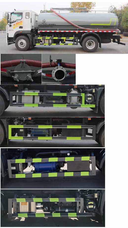 備注 | 主要專用裝置:罐體及吸糞裝置總成,主要用于抽排運(yùn)污水、糞便、泥漿等液態(tài)污物;罐體總?cè)萘?12.34立方米;罐體有效容積:11.73立方米;罐體外形尺寸(長×長軸×短軸)(mm):5200×2350×1500,4400×2350×1600;側(cè)、后防護(hù)材料均為:Q235碳鋼,連接方式均為:螺栓連接,后部防護(hù)截面尺寸(mm):120×50,后部防護(hù)離地高度(mm):470;ABS系統(tǒng)型號:ABS-VI.E;生產(chǎn)企業(yè):廣州瑞立科密汽車電子股份有限公司.ABS系統(tǒng)型號:ABS-E;生產(chǎn)企業(yè):威伯科汽車控制系統(tǒng)(中國)有限公司,ABS系統(tǒng)型號:3550D-1010;生產(chǎn)企業(yè):東科克諾爾商用車制動系統(tǒng)(十堰)有限公司.采用4500,3950mm軸距.選裝側(cè)部及后部出口樣式;隨底盤選裝限速裝置,限速90km/h.選裝尿素罐位置,選裝電瓶位置。 | ||