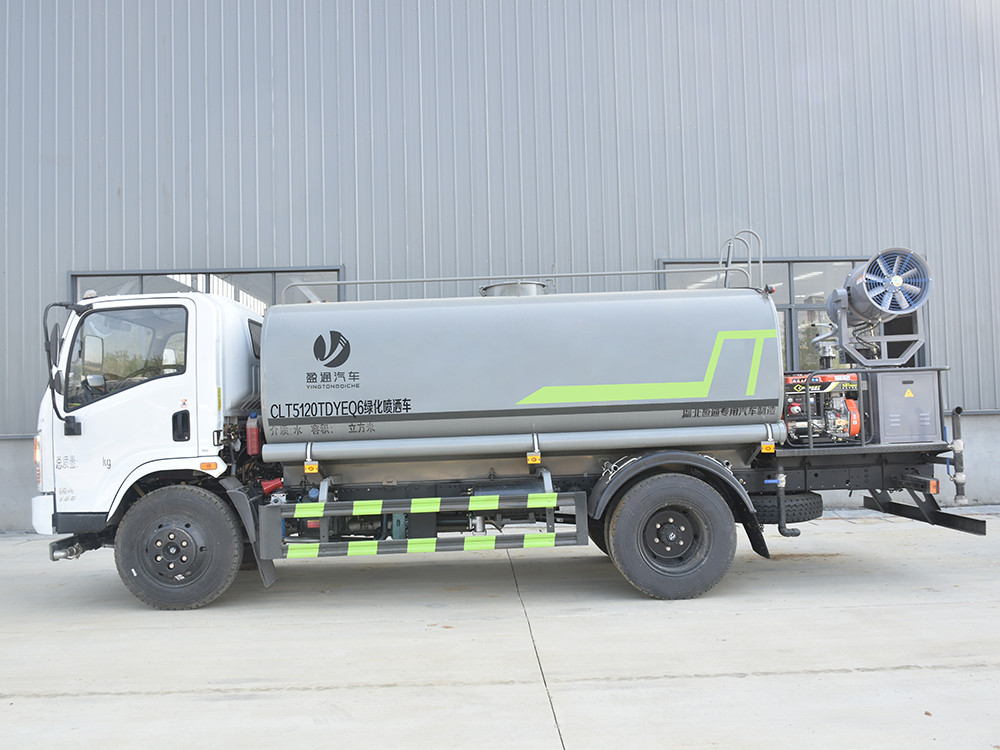 東風10方抑塵灑水車配置: 發(fā)動機云內(nèi) 150 馬力(四缸),萬里揚 6 檔變速箱,前橋 2.2 噸, 后橋 4.2 噸,8.25 鋼絲胎,軸距 3800,斷氣剎,ABS,空調(diào),電動玻璃, 中控鎖。2.上裝配置: 1、罐體約為 10 方,可加裝 30 型霧炮 2、邊燈帶電,罐體尾部上方標配 2 個紅色示寬燈, 3、標配前噴為鴨嘴直沖,標配后沖,用戶可根據(jù)自己的需求,來調(diào) 整對沖位置。 4、花紋防滑平臺,炮筒后蓋為定制型螺栓卡扣, 5、前噴、后沖、后灑、側(cè)噴,綠化高炮開關(guān)球閥均采用 50 大通經(jīng) 不銹鋼球閥, 6、新式軸承式水炮,更加耐用, 7、40-50 型水泵, 8、防腐法蘭墊片, 9、鋁制后灑,不易炸開 10、罐體自動焊(美國林肯焊機及電源),拼板自動焊接,封頭環(huán) 縫焊接,無氣孔,焊縫美觀。 11、側(cè)護網(wǎng)、后保險杠、均為螺栓連接,方便拆卸,維修方便。 12、塑料擋泥板,替代鐵擋泥板,更加輕便,用螺栓連接,方便拆 卸。 13、前部、后部主管連接處為 6 孔圓法蘭,不易沖墊
