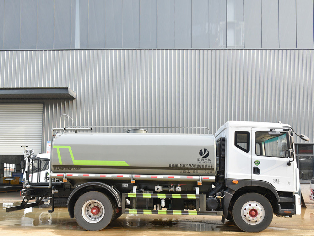 灑水車又稱為噴灑車、多功能灑水車、園林綠化灑水車。灑水車 適合于各種路面沖洗,樹木、綠化帶、草坪綠化,道路、廠礦企業施工 建設,高空建筑沖洗。灑水車也可以作為運水車使用,最常見的車型 有環衛灑水車、多功能灑水車、綠化灑水車幾大類。 我公司產品標配前噴(鴨嘴)、后沖、后灑、側噴、后置式工作 平臺,平臺上配置綠化水炮(可 360°旋轉,既可以調成柱狀,也可 以調成霧狀,更可以調成直沖狀、大雨、中雨、小雨、毛毛雨),配 備優質大功率專用灑水泵(可自吸自排,可從河里或池塘抽水到罐體), 取力器,雜物過濾網,消防接口,自流球閥系統、取力器、球閥、濾網 均為國家標準產品,主管道加粗,法蘭墊、法蘭盤加厚,大通徑球閥。 整體具備性能優良安全可靠、效率高、流量大、維修方便等特點。