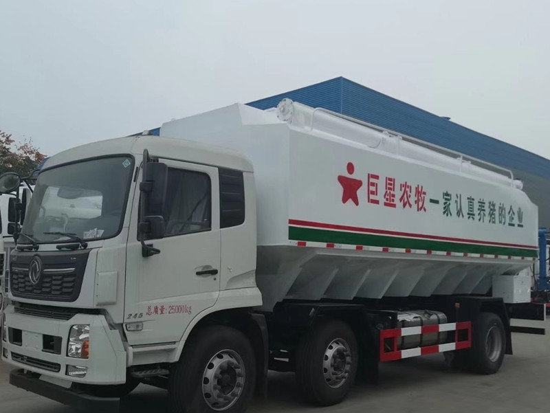 東風柳汽乘龍28方單橋散裝飼料運輸車,28立方14噸,玉柴6缸200馬力發動機,超強爆發力,法士特8檔變速箱帶高低檔,10.00鋼絲胎!