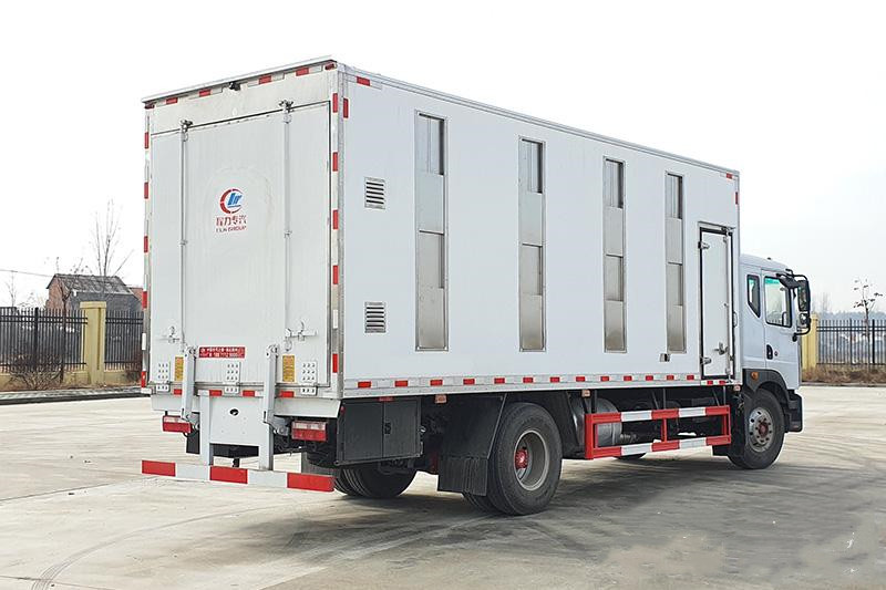 1、分層裝載機構:箱體內設置3-4層固定裝載機構,通過尾板液壓系統升降,實現豬崽每層裝卸,每層隔板配置分欄隔斷。