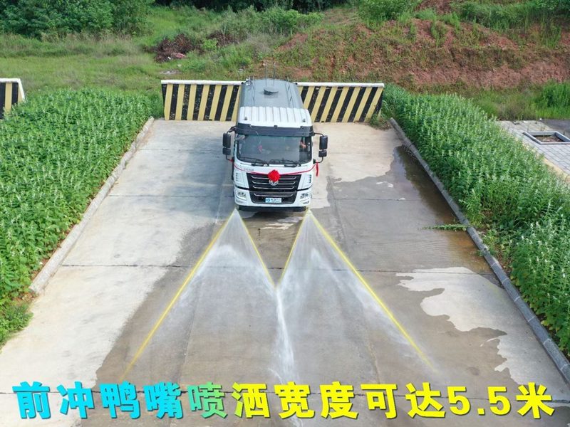 灑水車專用功能配置:罐體實際容積約為12立方米,(罐體有效參數(shù)9.79立方米、額定載質(zhì)量9325kg、)采用武鋼優(yōu)質(zhì)碳鋼板卷壓成型。配備專用灑水泵,自吸自排,前噴后灑、側(cè)噴、后工作平臺及灑水高壓炮。灑水泵自吸高度為6米左右,整車灑水寬度14米左右,后工作平臺水炮可調(diào)成:直沖狀、大雨、中雨、小雨、毛毛雨,有效射程≥28米,整車帶接頭、水位計,自流閥。后工作平臺主管路帶1寸澆花接口,附送2根3米水管,1個爬梯,兩側(cè)及后保險杠。
