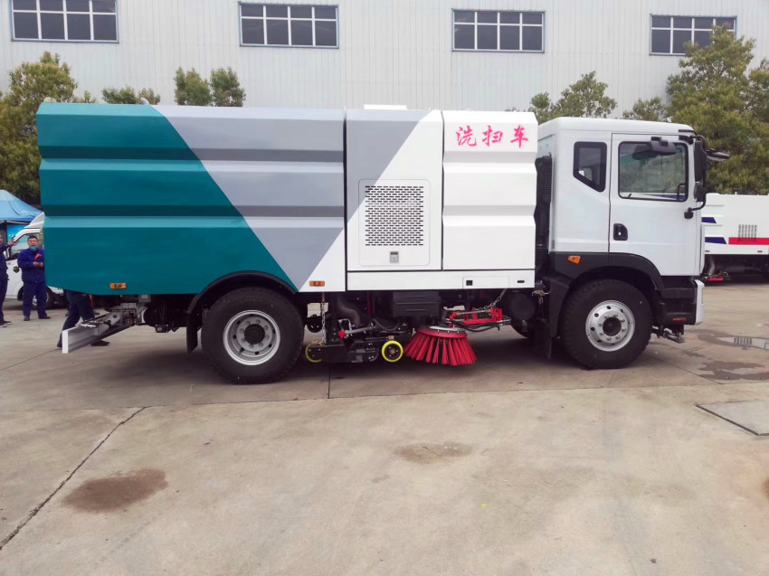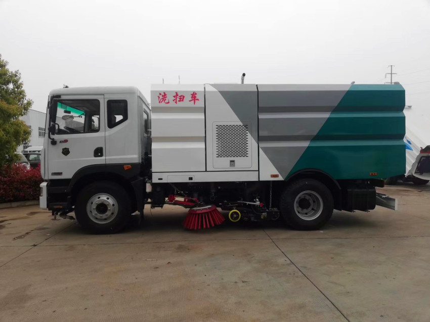 8)采用先掃,后沖刷,再吸收的工作方式,能將垃圾及污水一次清掃、沖刷、吸收干凈。路面作業后無塵土,無積水;