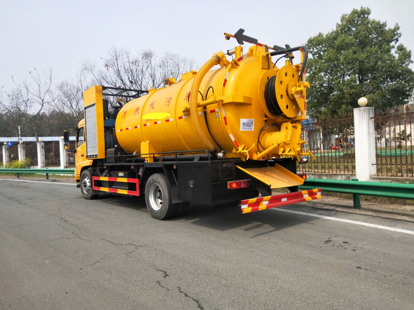 吸污車專用部分由取力器、傳動軸、真空吸污泵、壓力罐體、液壓部分,管網系統、真空壓力表、視糞窗、洗手裝置等組成,隨車配置大功率真空吸污泵和優質液壓系統,罐體封頭一次壓鑄成型、罐體可后開、雙頂自卸。罐內污物可通過后蓋直接傾倒,具有真空度高(比吸糞車的吸力更大)、噸位大、效率高、用途更廣泛的特點
