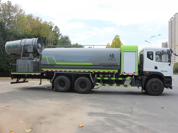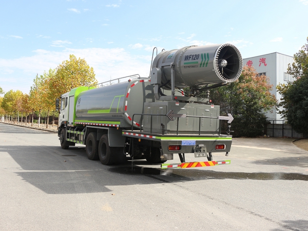 東風(fēng)大型灑水車-抑塵車上裝配置: 1、罐體約為 17 方,可加裝 60-120 型霧炮 2、邊燈帶電,罐體尾部上方標(biāo)配 2 個(gè)紅色示寬燈, 3、標(biāo)配前噴為鴨嘴直沖,標(biāo)配后沖,用戶可根據(jù)自己的需求,來(lái)調(diào) 整對(duì)沖位置。