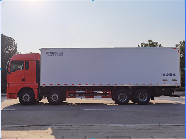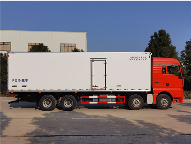 汕德卡9米6氣囊橋冷藏車又叫做31噸冷藏車,32噸冷藏車,9米6冷藏車,食品冷藏車,適用于:食品(水果蔬菜,豬肉,海鮮等),藥品,電子元器件等等領(lǐng)域。