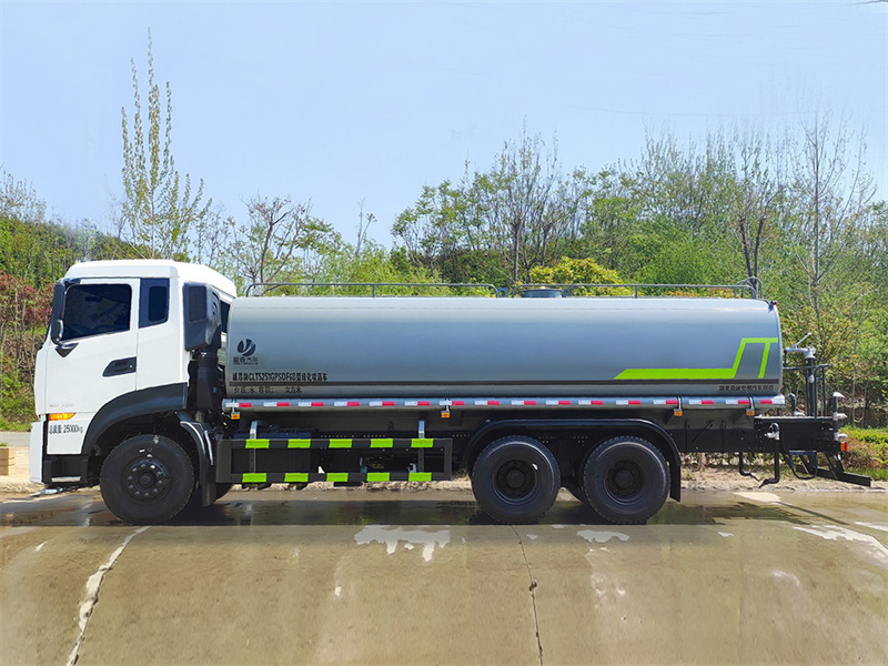 東風(fēng)天龍18噸灑水車產(chǎn)品標(biāo)配前噴(鴨嘴)、后沖、后灑、側(cè)噴、后置式工作 平臺(tái),平臺(tái)上配置綠化水炮(可 360°旋轉(zhuǎn),既可以調(diào)成柱狀,也可 以調(diào)成霧狀,更可以調(diào)成直沖狀、大雨、中雨、小雨、毛毛雨),配 備優(yōu)質(zhì)大功率專用灑水泵(可自吸自排,可從河里或池塘抽水到罐體), 取力器,雜物過濾網(wǎng),消防接口,自流球閥系統(tǒng)、取力器、球閥、濾網(wǎng) 均為國(guó)家標(biāo)準(zhǔn)產(chǎn)品,主管道加粗,法蘭墊、法蘭盤加厚,大通徑球閥。 整體具備性能優(yōu)良安全可靠、效率高、流量大、維修方便等特點(diǎn)
