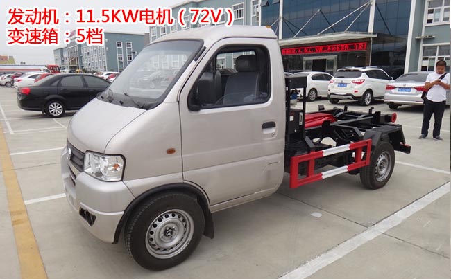 凱馬新能源勾臂垃圾車,轎卡1600寬車身,5檔變速箱,軸距2.9米,2.5噸后橋,165/70R14LT輪胎,獨(dú)懸大梁,11.5KW電機(jī)(72V),三元鋰電18.65度。