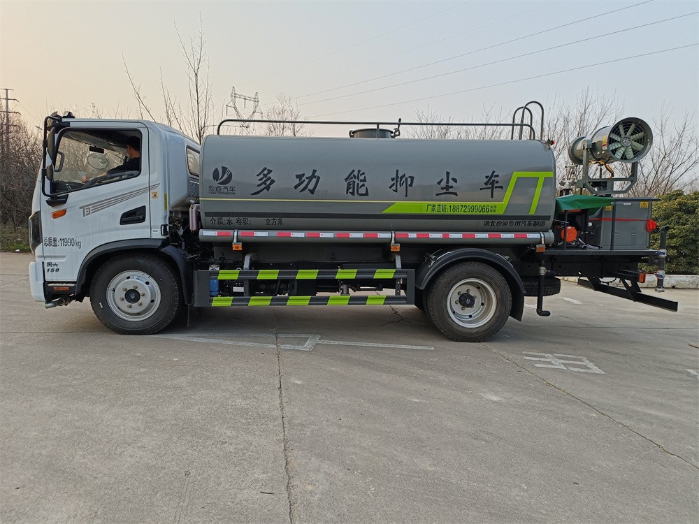 東風華神 T3 10 方抑塵車產品介紹一. 產品簡述 抑塵車又稱為綠化噴灑車、多功能灑水車、園林綠化灑水車。抑 塵車適合于各種路面沖洗,樹木、綠化帶、草坪綠化,道路、廠礦企業 施工建設,高空建筑沖洗。抑塵也可以作為運水車使用,最常見的車 型有綠化噴灑車、多功能灑水車、綠化灑水車幾大類。 我公司產品標配前噴(鴨嘴)、后沖、后灑、側噴、后置式工作 平臺,平臺上配置綠化水炮(可 360°旋轉,既可以調成柱狀,也可 以調成霧狀,更可以調成直沖狀、大雨、中雨、小雨、毛毛雨),配 備優質大功率專用灑水泵(可自吸自排,可從河里或池塘抽水到罐體), 取力器,雜物過濾網,消防接口,自流球閥系統、取力器、球閥、濾網 均為國家標準產品,主管道加粗,法蘭墊、法蘭盤加厚,大通徑球閥。 整體具備性能優良安全可靠、效率高、流量大、維修方便等特點。