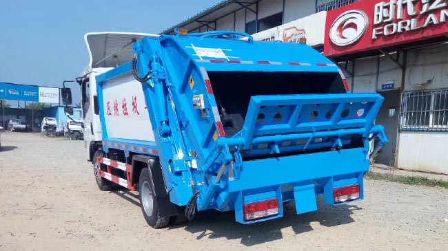 壓縮垃圾車采用機電液一體化技術(shù),借助機、電、液聯(lián)合自動控制系統(tǒng)、電腦控制系統(tǒng)及手動操作系統(tǒng),通過車廂、填裝器和推鏟等專用裝置,實現(xiàn)垃圾倒入、壓碎或壓扁、強力填裝,把垃圾計入車廂并壓實以及垃圾推卸的工作過程。利用后裝裝置與垃圾桶或垃圾斗對接,一起組合成流動垃圾中轉(zhuǎn)站,具有自動反復壓縮以及蠕動壓縮功能 。