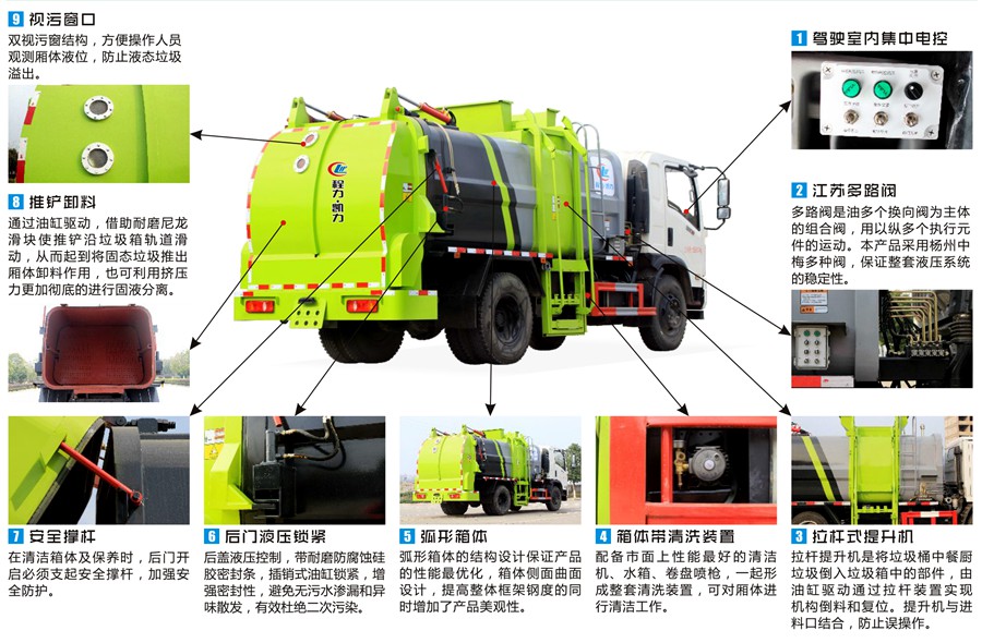| 整車備注: | 僅選用2800mm軸距底盤改裝, 額定載質量(kg)/駕駛室準乘人數(人)的對應關系為:1015/2, 950/3。防護材料:Q235B碳鋼, 連接方式:左右側面防護均采用焊接連接在副梁上, 后部防護由專用裝置代替豁免, 最小離地高度為480mm。ABS型號:CM4XL-4S/4K(4S/4M), ABS生產企業:廣州市科密汽車制動技術開發有限公司。可選裝H6代前圍及前部燈具, 可選裝后門樣式。專用裝置:廂體及提升機構, 主要用于餐廚垃圾的收集與運輸。 | ||
