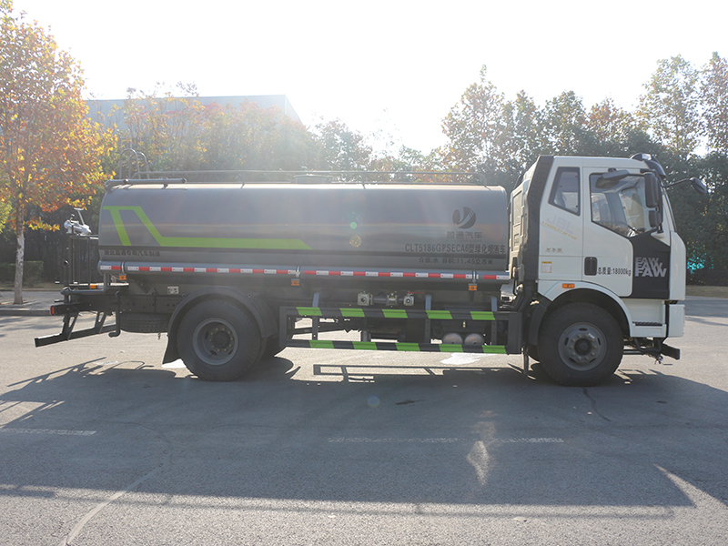 標準配置灑水車主要裝備有:前沖(沖洗公路路面)、后灑(公路路面養護)、側噴、高位側花灑(路邊綠化帶優化);后工作平臺高壓水炮,可調節成柱狀,射程≥28m;也可調節成霧狀,射程≥30米,水泵自吸高度:≤7m,灑水寬度:≥15m。側防護網,自流閥,消防接頭。灑水車水泵為常壓水泵,功能可以抽水、排水。另外根據用戶要求,可加消防泵、噴霧機、農藥卷盤、農藥柱塞泵。罐內可以做防腐防銹、電磁閥氣動閥自動放水等****,以滿足不同用戶需求。