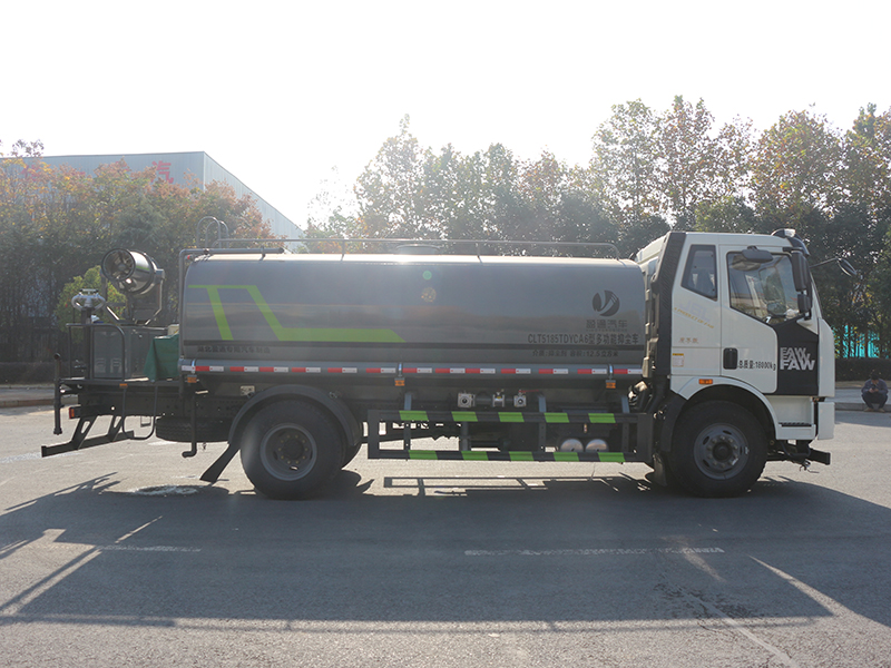 標準配置灑水車主要裝備有:前沖(沖洗公路路面)、后灑(公路路面養護)、側噴、高位側花灑(路邊綠化帶優化);后工作平臺高壓水炮,可調節成柱狀,射程≥28m;也可調節成霧狀,射程≥30米,水泵自吸高度:≤7m,灑水寬度:≥15m。側防護網,自流閥,消防接頭。灑水車水泵為常壓水泵,功能可以抽水、排水。另外根據用戶要求,可加消防泵、噴霧機、農藥卷盤、農藥柱塞泵。罐內可以做防腐防銹、電磁閥氣動閥自動放水等****,以滿足不同用戶需求。