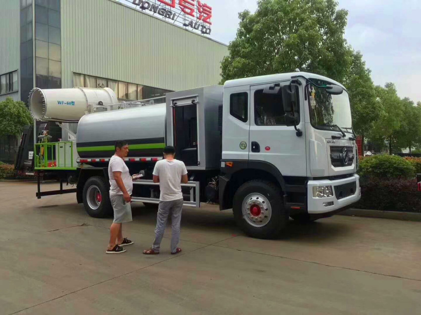 上裝配置:罐體容積為 15-18 立方多功能抑塵灑水車,選配風送式霧炮機組射程50米、60米、80米、100米、120米,罐體鋼板為4mm碳鋼Q235材質,罐內隔板具有防波作用,以減輕汽車行駛時罐體液體沖擊,罐體及整車外形尺寸按照公告。帶大功率專用灑水泵,泵可自吸自排,整車前沖、后灑、側噴、帶65消防接口,后平臺配CLW-50、CLW-60、CLW-80、CLW-100、CLW-120型風送式霧炮機組;罐體前封頭配大功率柴油發電機組;遠程遙控系統控制;霧炮機自動旋轉角度0-360°。后平臺帶綠化灑水炮,灑水炮可全方位旋轉,可連續調成直沖狀、大雨、小雨、毛毛雨;前封頭帶水位計,后平臺主管路帶1寸澆花接口,后爬梯。帶兩根輸水管及陰陽端。罐體顏色:銀/灰/綠,罐體兩側噴“多功能抑塵車”字樣,貼反光標示。