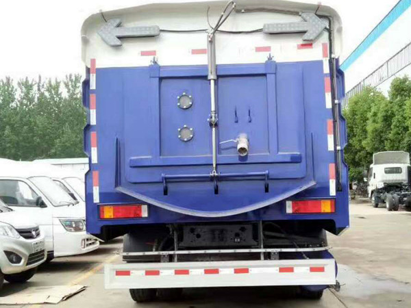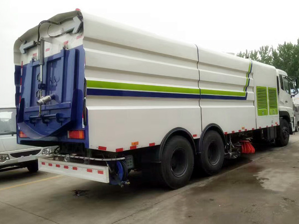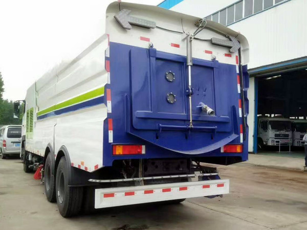14、東風天龍洗掃車的后門的開閉都通過液壓控制,垃圾箱內置自潔功能,當垃圾傾倒完成后,可快速清理垃圾箱,減少環衛工人的工作量。