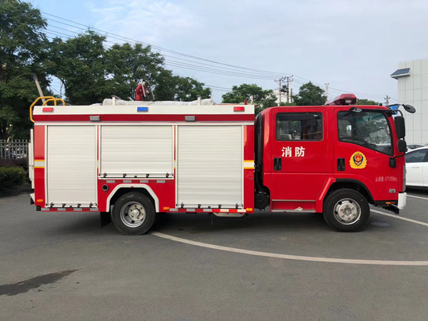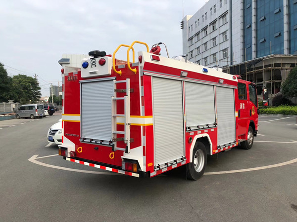 慶鈴五十鈴3噸泡沫消防車采用700P慶鈴底盤改裝,平頭雙排駕駛室,液壓翻轉(zhuǎn),慶鈴五十鈴4HK1-TC51發(fā)動(dòng)機(jī),190馬力,國(guó)五排放,罐體容積3.1立方米;整車結(jié)構(gòu)緊湊,方便靈活,動(dòng)力性能好,車速高,能自由進(jìn)出鄉(xiāng)村狹窄道路及小區(qū),具有消防車的全套消防功能,上裝箱體的上裝骨架全部采用引進(jìn)歐洲技術(shù)生產(chǎn)的鋁合金型材制造,整車的重量減少,機(jī)動(dòng)性能和整車載重量提高。除了裝備消防水泵及器材以外,還設(shè)有較大容量的貯水罐及水槍、水炮等。可將水和消防人員輸送至火場(chǎng)獨(dú)立進(jìn)行撲救火災(zāi)。也可以從水源吸水直接進(jìn)行撲救,或向其他消防車和滅火噴射裝置供水。在缺水地區(qū)也可作供水、輸水用車,主要適用于大中城鎮(zhèn)、鄉(xiāng)村狹窄街道、城市小區(qū)、繁忙的批發(fā)市場(chǎng)等場(chǎng)所的一般物質(zhì)滅火,閑暇時(shí)可用于園林噴灌、道路清灑。