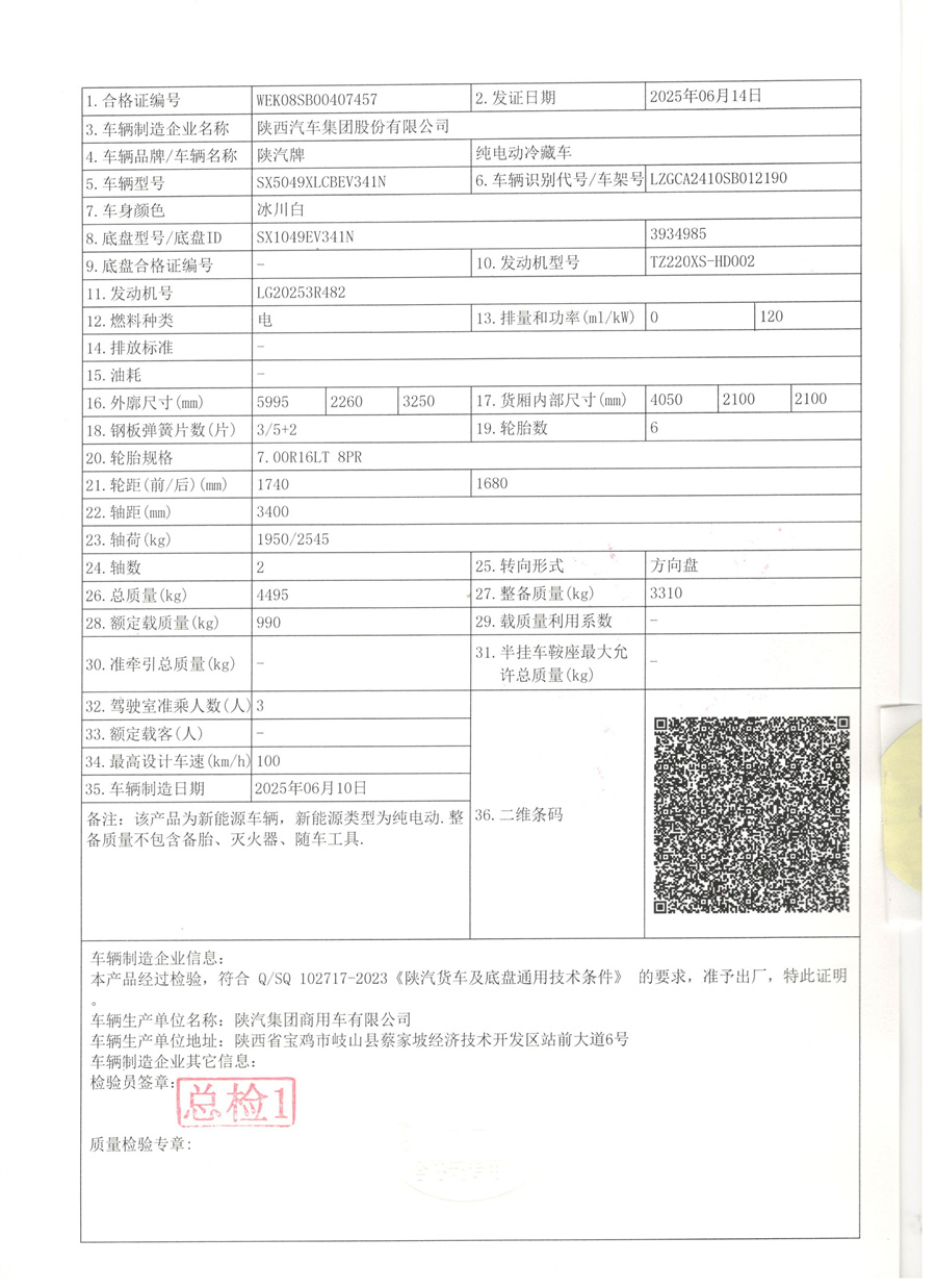 整車型號:SX5049XLCBEV341N