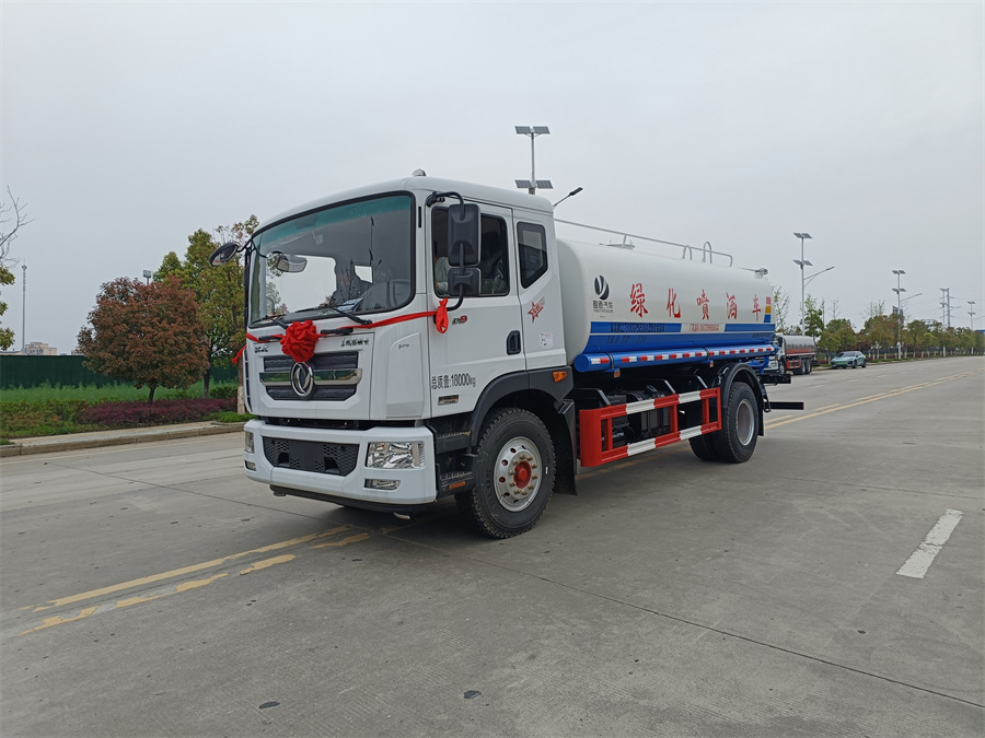 產品標配前噴(鴨嘴)、后沖、后灑、側噴、后置式工作 平臺,平臺上配置綠化水炮(可 360°旋轉,既可以調成柱狀,也可 以調成霧狀,更可以調成直沖狀、大雨、中雨、小雨、毛毛雨),配 備優質大功率專用灑水泵(可自吸自排,可從河里或池塘抽水到罐體), 取力器,雜物過濾網,消防接口,自流球閥系統、取力器、球閥、濾網 均為國家標準產品,主管道加粗,法蘭墊、法蘭盤加厚,大通徑球閥。 整體具備性能優良安全可靠,可以加裝電子水炮,氣動球閥,霧炮